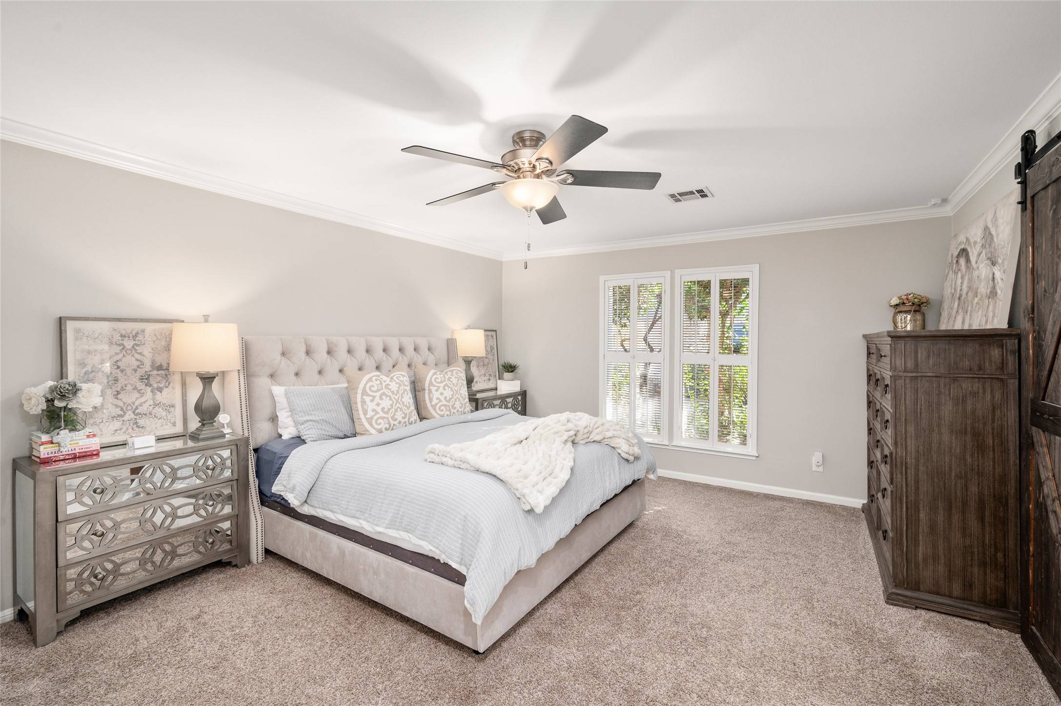Beautifully updated, oversized one-story home within the heart of loved Nottingham Forest. Blending luxury and functionality with an open layout, this special floor plan offers 4 bedrooms, 2 and a half baths with a dedicated office space, catered to modern living. Floor to ceiling double paned windows allow natural light to permeate the living spaces. The formal dining is expansive and opens to the inviting living area with whitewashed fireplace, handscraped hardwood flooring and crown moulding. The cheery white kitchen opens to the sunny breakfast space, boasting views and access to the lovely backyard with covered patio and lush landscaping. The primary is situated in the back of the home with unbelievable resort-like primary bath, boasting a colossal marble shower, luxurious soaker tub, dual vanities with quartz counters and his and hers closets. Other updates include pex piping, blown fiberglass insulation, French drains, 2024 electrical panel & more. Never flooded per seller.